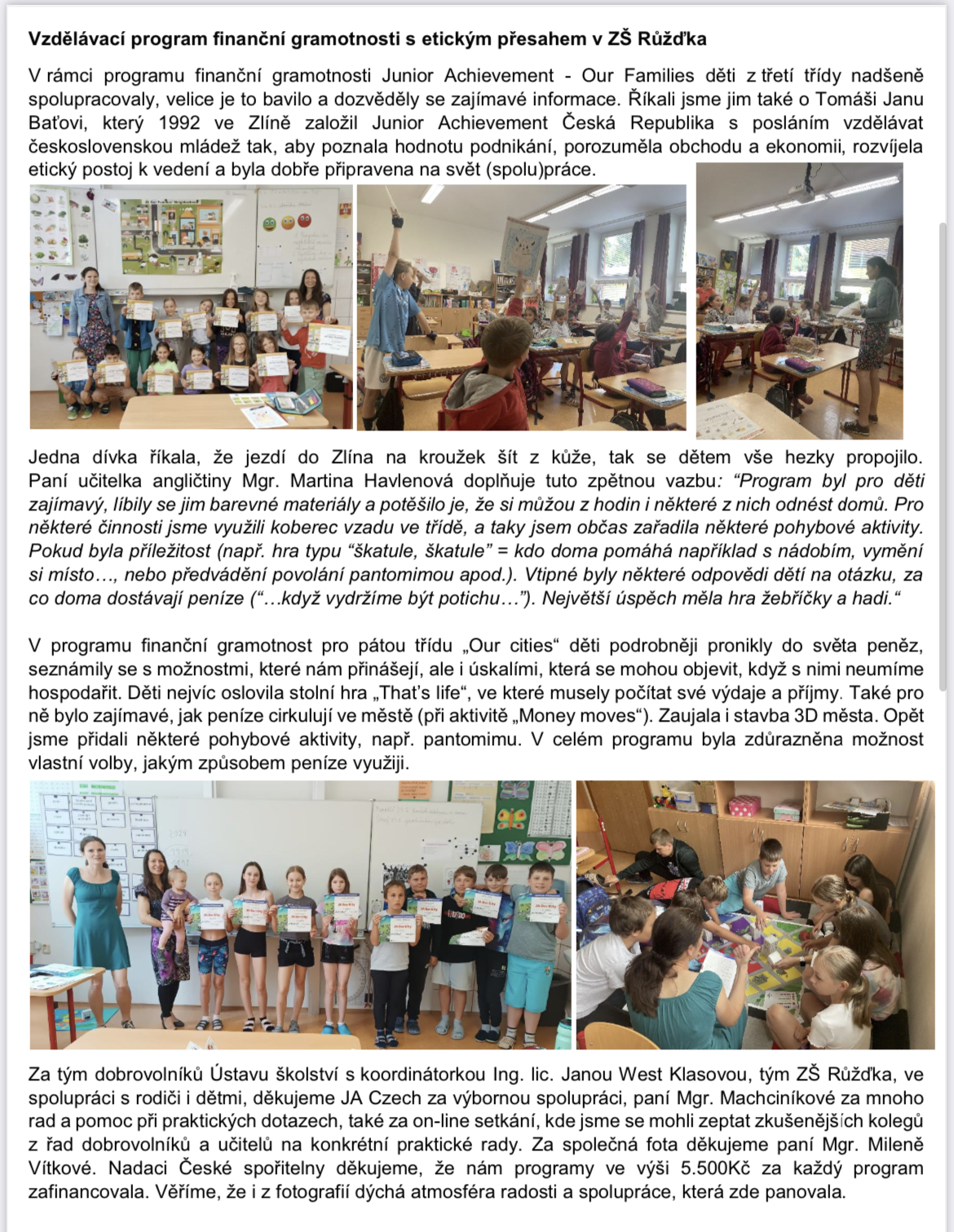 Chcete podpořit zpracovávání zpětné vazby škol, podpořit vzdělávání aj.? Napište nám na email: jana.klasova@ustav-skolstvi.cz , zavolejte na 608 11 88 99 nebo pošlete finanční dar na č.ú.: 2500676380/2010 nebo 123467890/5500. Děkujeme za Vaše dary a příspěvky (veškeré finanční dary jsou využity pro oblast školství a vzdělávání, mecenáš i sponzor ví přesně, do jaké aktivity, učební pomůčky, lektora, kurzu či vzdělání byly věnované finance použity).